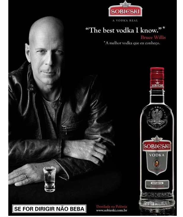 The actor began endorsing Sobieski, a Polish brand of vodka, in 2009, appearing in dozens of tongue-in-cheek television commercials and at promotional parties. He also appeared in black-and-white newspaper ads in which he was quoted saying: "I am very selective about what products I choose to associate myself with."