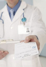 Companies cannot pay doctors to prescribe drugs that are given in pill form and purchased from pharmacies, but they can rebate part of the price that doctors pay for medicines that they dispense in their offices, the Times said.